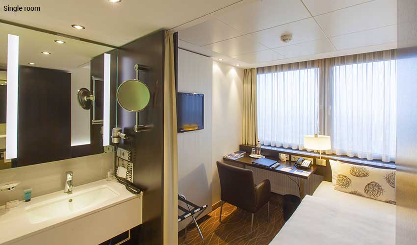 Det er muligt at bestille 3 sengsværelser på dette hotel mod tillæg. Indlogeringen vil ske på fx color suites. Der kan ikke altid garanteres vindue på værelserne, men de er flotte og lyse.
