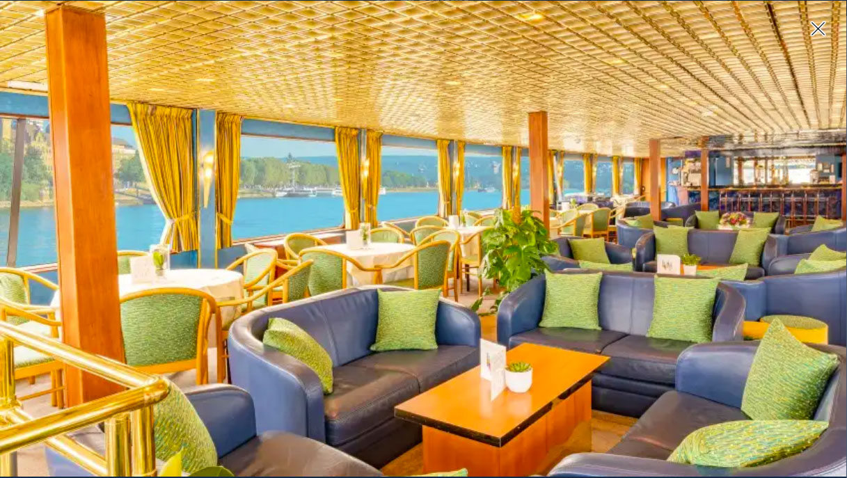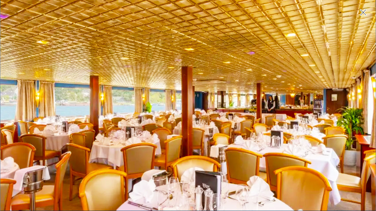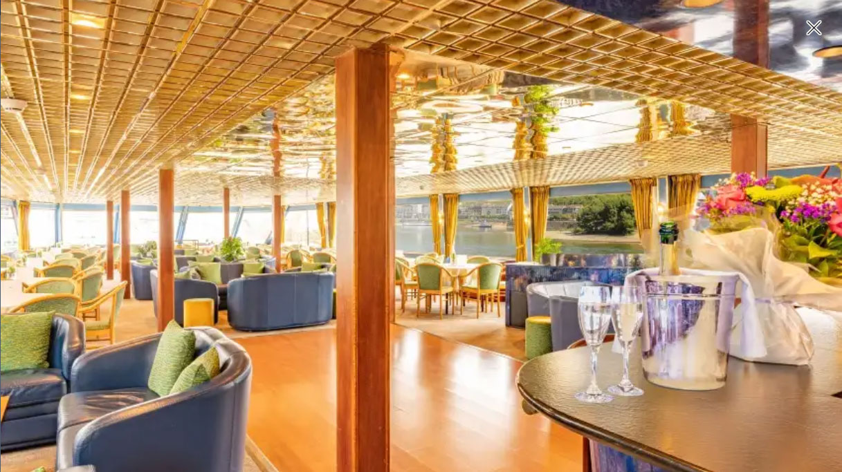 På øverste dæk finder du receptionen, den indbydende restaurant og en stilfuld lounge / bar med dansegulv samt kahytter.